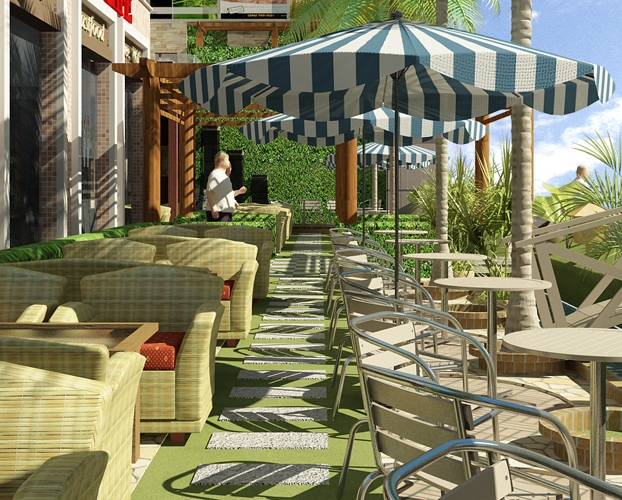 Không gian CAFE ngoài trời với mầu xanh cây lá.
